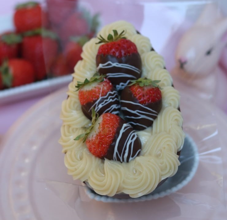Ovo com recheio de Doce de Morango Caseiro, Nutella e Brigadeiro de Ninho, com casca de chocolate Meio Amargo.